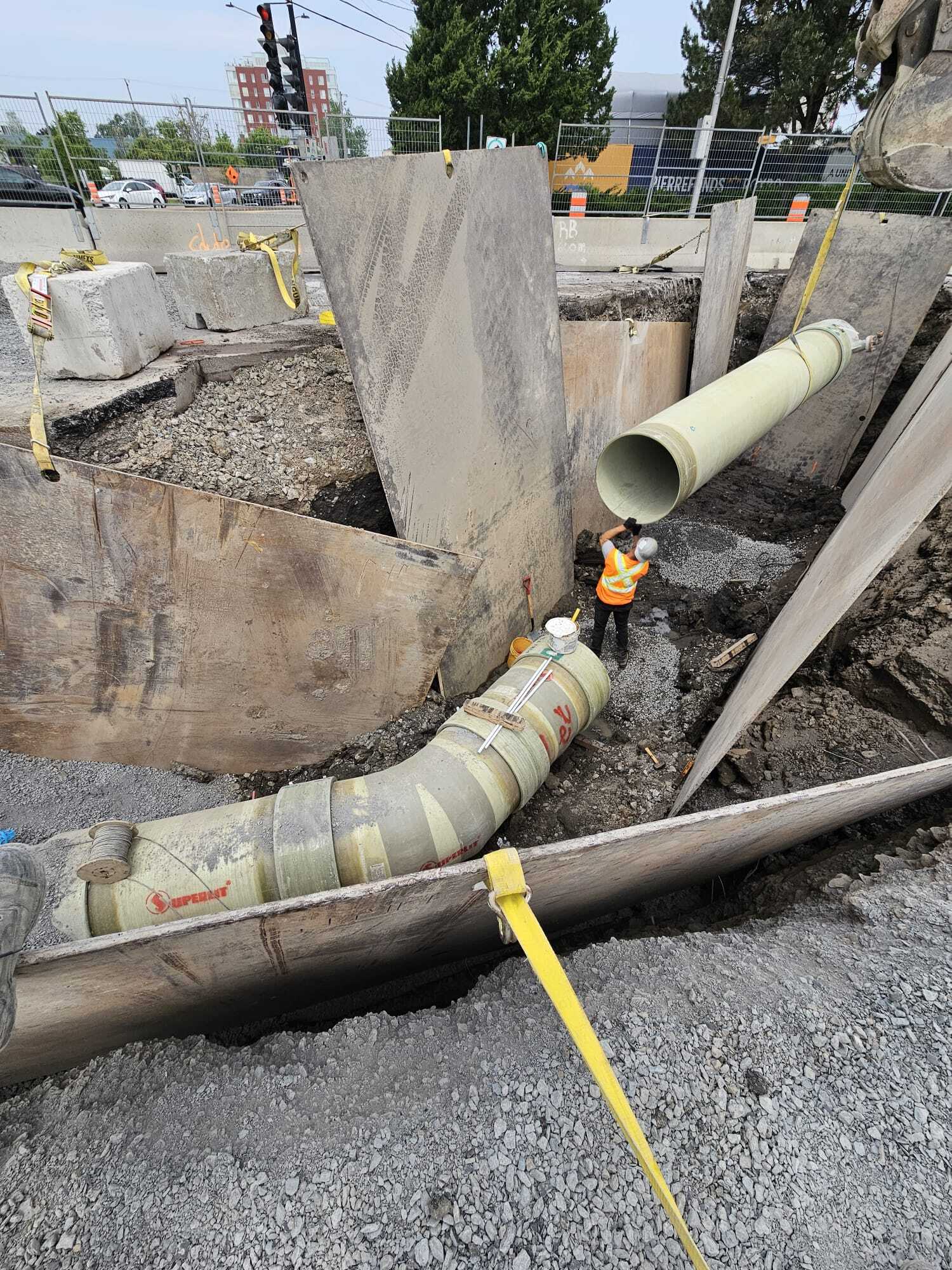 Ce projet présente la réhabilitation structurale d’un collecteur d'égout unitaire ovoïde en brique datant de 1909, situé au centre-ville de Montréal. La méthode d'installation utilisée est l'insertion ("sliplining") avec des coques ovoïdes en PRV fabriquées sur mesure par Channeline. Cette solution permet de préserver la forme originale de la conduite d'accueil pour un écoulement optimal, de prolonger sa durée de vie de 100 ans et de réduire au minimum les impacts en surface - des applications pour lesquelles Novinfra accompagne ses clients grâce à des matériaux spécialisés et une expertise technique.